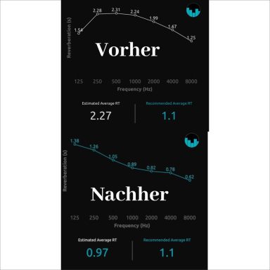 Mit unseren Akustikelementen verwandeln wir Ihren Raum in ein akustisches Meisterwerk. Wir bieten Ihnen eine 3D-Skalierung und Fotoübersicht, damit Sie schon vor der Montage sehen können, wie Ihr Raum nach der Installation aussehen wird. Zusätzlich erstellen wir Messprotokolle, die Ihnen zeigen, welche akustischen Verbesserungen erzielt werden und wie sich der Klang optimiert. Vertrauen Sie auf unsere Expertise, um Ihre Raumakustik auf ein neues Level zu heben und eine perfekte Klangumgebung zu schaffen.